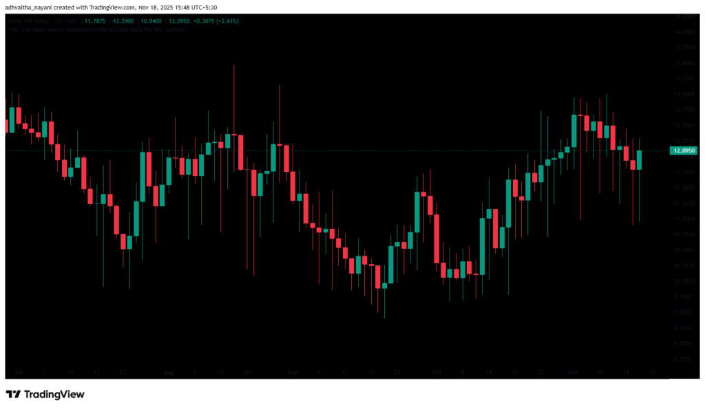 The India VIX increased 0.31 points or 2.61%, from 11.79 to 12.10 during Tuesday’s session. An increase in the India VIX typically indicates higher price volatility in the stock market, and the broader indices ended the session on a volatile note on Tuesday. However, a stable market environment and minimal volatility are anticipated when the India VIX is below 15.