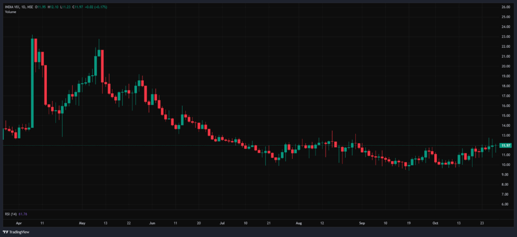 The India VIX increased by 0.02 points or 0.17%, from 11.95 to 11.97 during Wednesday’s session. An increase in the India VIX typically indicates higher price volatility in the stock market, suggesting a less stable market environment. However, a stable market environment and minimal volatility are anticipated when the India VIX is below 15.