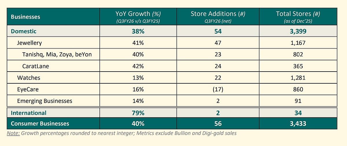 According to the latest quarterly updates, the Tata Group firm said its jewellery division, which contributed around 85% of its business, “clocked a robust 41% YoY growth in Q3FY26”.