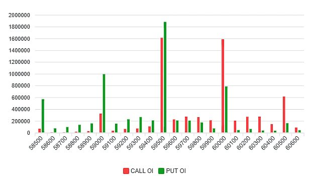 Analysts expect index to extend the consolidation within the 58,700–60,000 range. A decisive breakout above this range or a breakdown below it will provide clarity on the next directional move. Key short-term support zone lies at 59,000–58,700.